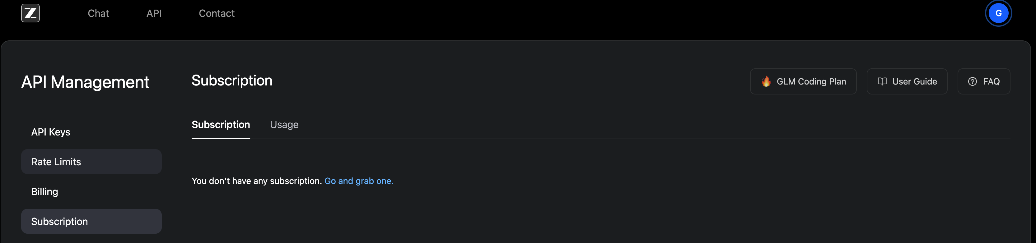 智谱 AI 国际版本网站打开就是“暗系装修风格”,直到现在我也没找到切换开关,基本可以确定网站只有一种风格。网站整体 UI 设计(下图),给我感觉就是两个字:简陋。或者说简约,😓。注册之后没有找到赠送的资源包,最低档套餐需要付费。收费加简陋,我一度以为自己进到了“钓鱼网站”。在用 AI 可以很轻易生成现代站点的今天,不敢相信这是一家 LLM 模型公司的站点。